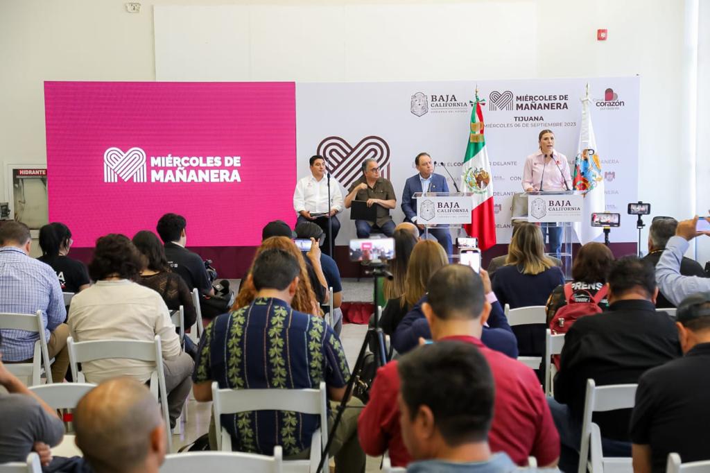 En la nonagésima cuarta edición del “Miércoles de Mañanera con Marina del Pilar” que tuvo lugar en la ciudad de Tijuana, la mandataria estatal resaltó el apoyo del presidente de México, Andrés Manuel López Obrador, en el combate permanente a las adicciones.