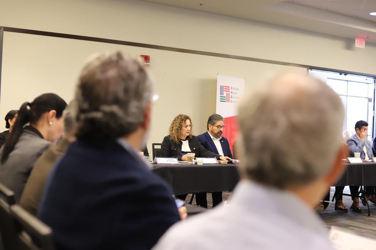 Durante el encuentro del Consorcio de Educación Superior Calibaja, la secretaria de Educación de Baja California, Mtra. Irma Martínez Manríquez, agradeció la participación de las y los integrantes del Consorcio y refrendó el compromiso del Gobierno del Estado, encabezado por Marina del Pilar Avila Olmeda, para impulsar iniciativas que fortalezcan la educación en la región, señaló que el principal interés es que las y los jóvenes aprovechen las oportunidades educativas que ofrecen ambas Californias, así como promover la movilidad y la capacitación del personal docente, en especial el fortalecimiento del idioma inglés, con el objetivo de elevar la calidad educativa.