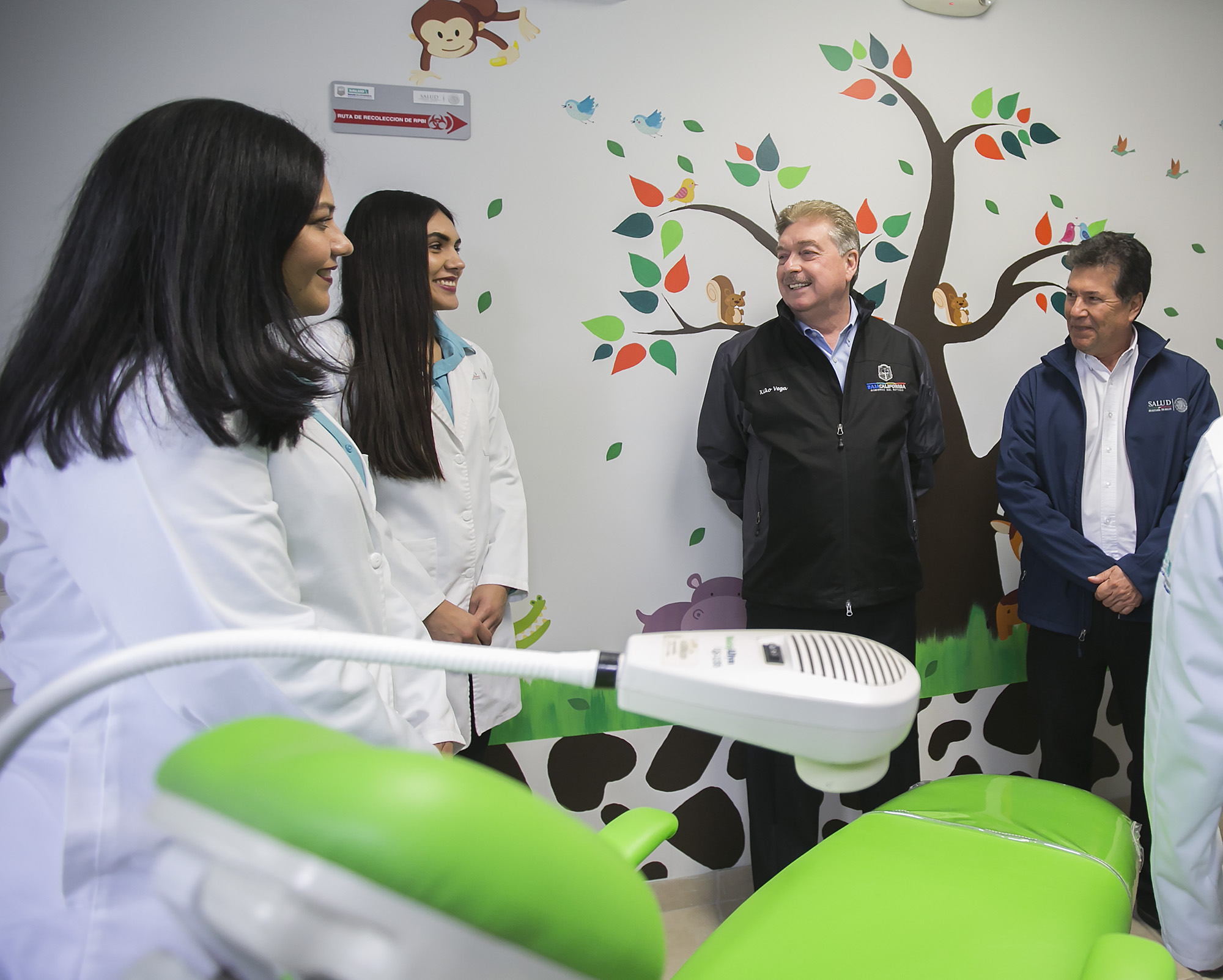 En el evento, el Gobernador Francisco Vega estuvo acompañado por el Director General del Seguro Popular, Alejandro Monraz Sustaita; el Director de la Escuela de Ciencias de la Salud del Campus Valle de las Palmas de la UABC, Eduardo Serena Gómez; el Director de la Facultad de Odontología del Campus Otay de la UABC, Francisco Raygoza Macías; el Representante de la Segunda Zona Militar, Reyes Fernández de la Cruz y el Representante de la asociación Carita de Dios, Ángel González Murguía.