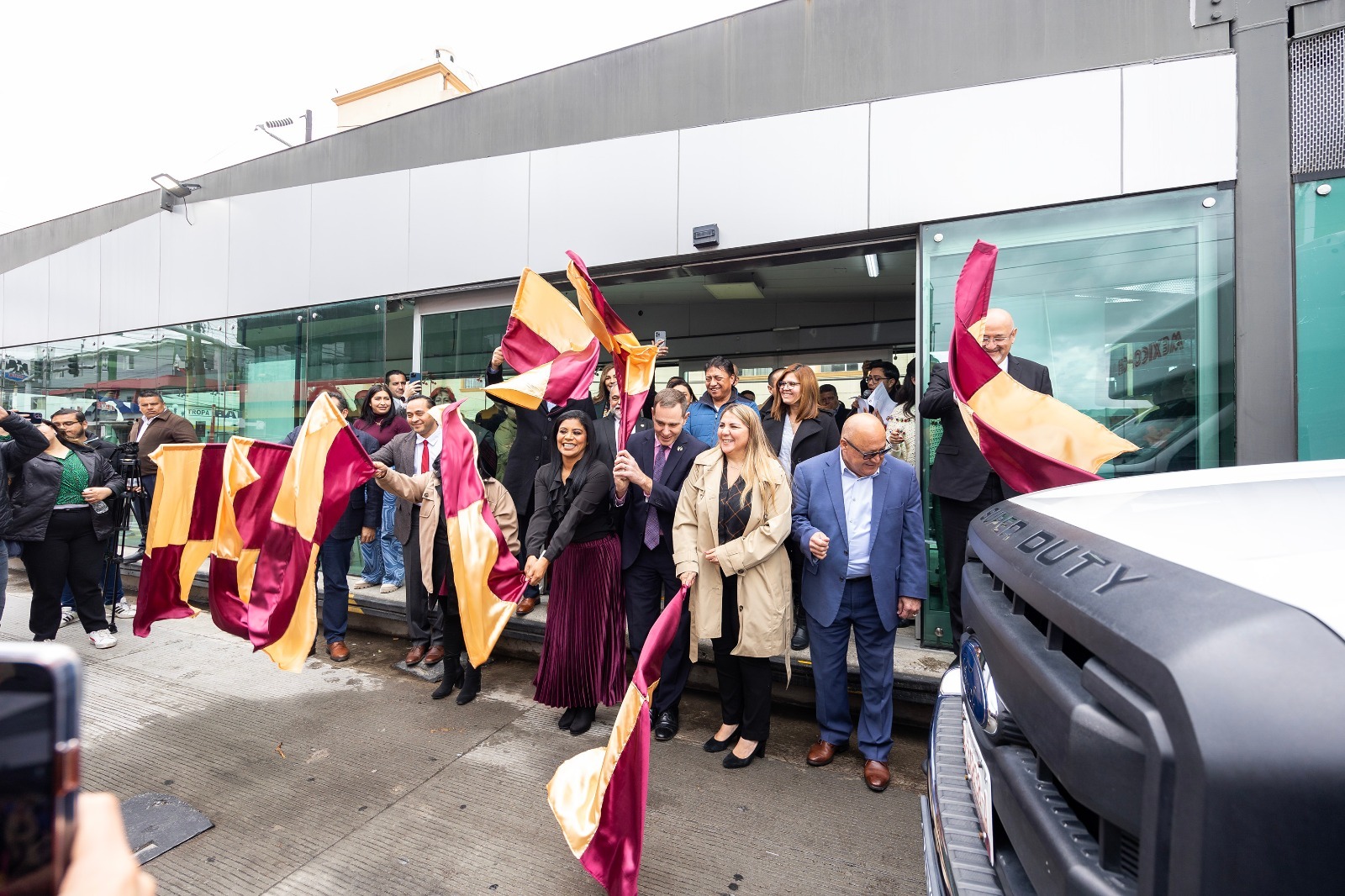 Frente al Cónsul General Adjunto, Bill Swaney, la alcaldesa detalló que habrá 10 unidades en servicio, donde se estima un aproximado de 360 mil cruces de personas al año que aportarán a la reducción del número de vehículos en la frontera, además de aminorar las emisiones de contaminación para cuidar la calidad del aire en ambas fronteras.