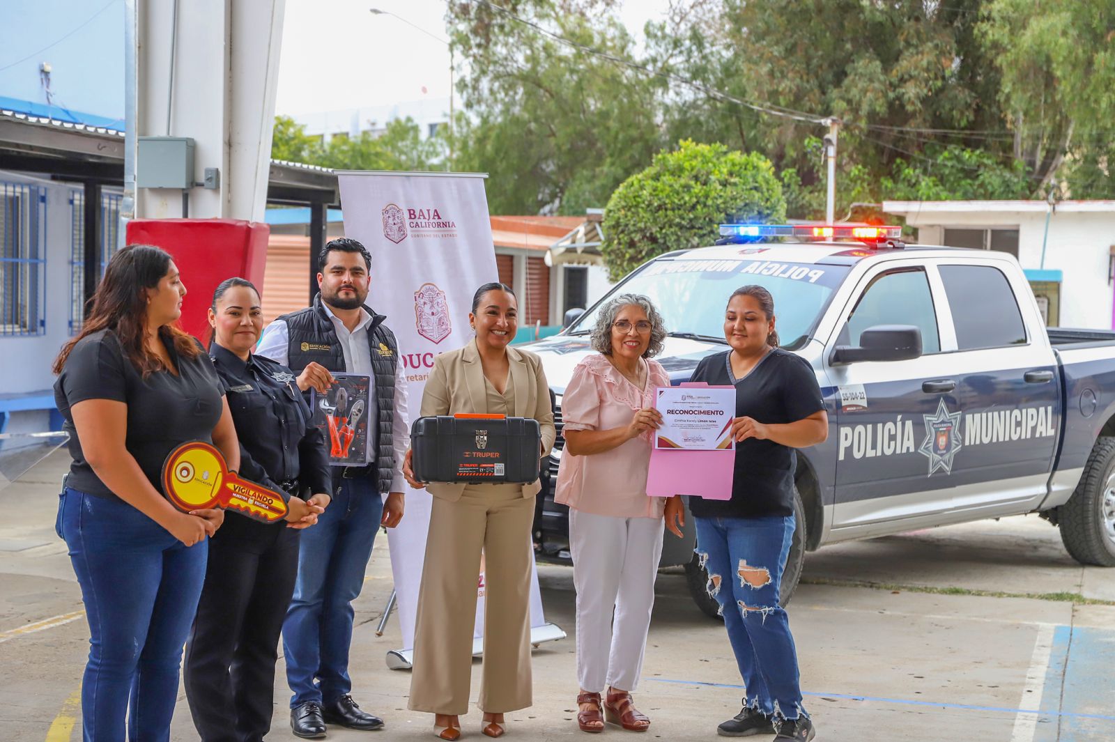 En el acto estuvieron presentes, además de la delegada Nancy Alcántara Ibarra, María Luisa Munguía Ramírez, de la Dirección de Prevención del Delito y Participación Ciudadana Municipal; Blanca Elvira Pérez, directora de la Primaria Cuauhtémoc; Cecilia Elvira Ramírez Segura, presidenta de la Sociedad de Madres y Padres de Familia, así como jefes de nivel y coordinadores de la Secretaría de Educación Básica en Tijuana.