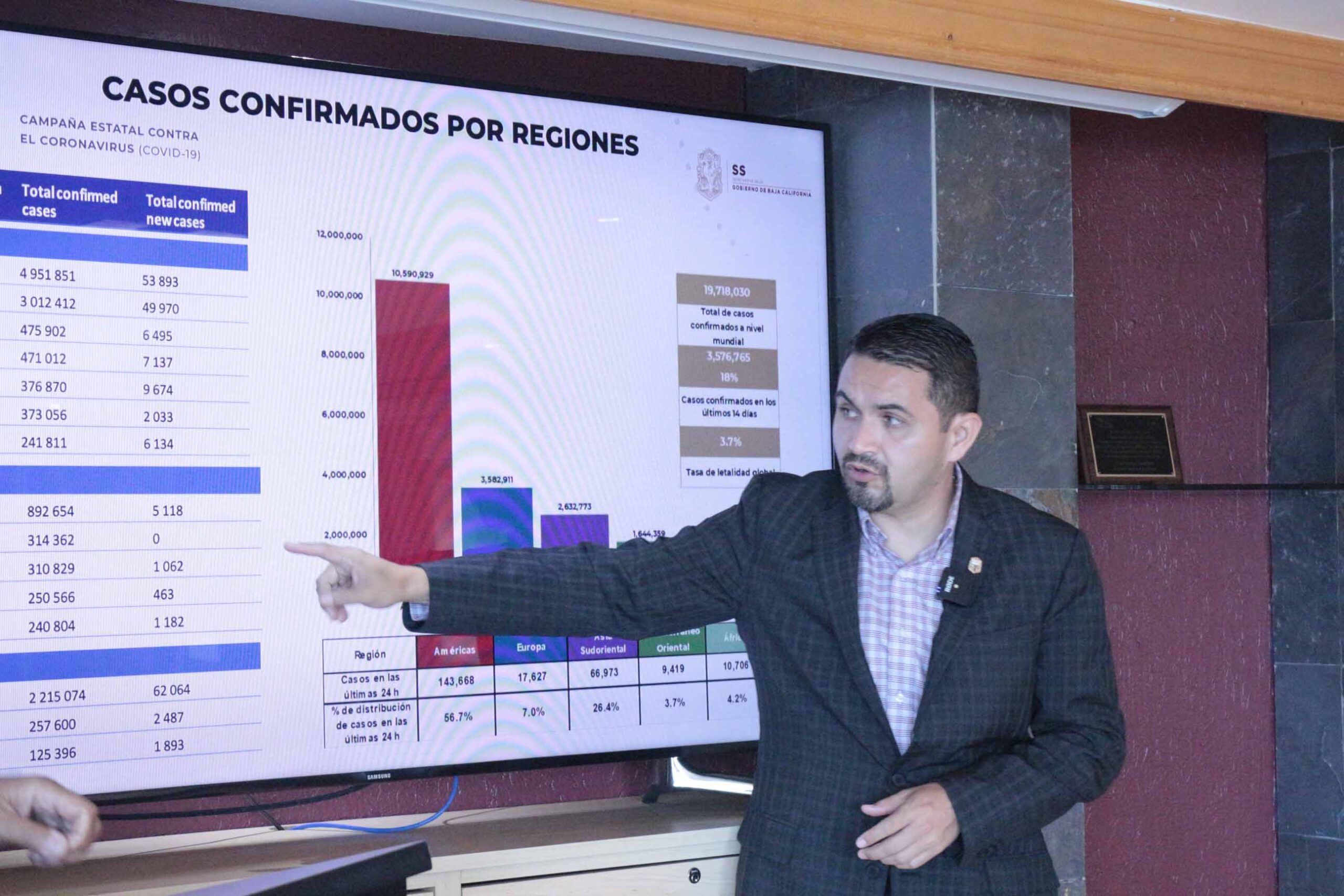En este sentido, el secretario Pérez Rico dijo que en el periodo de 10 de julio al 10 de agosto, a nivel nacional se reportaron 133 mil 042 nuevos casos, de los cuales 2 mil 191 corresponden a Baja California, lo cual representa el 1.65% del total, ubicándose en la posición 21 de las entidades.