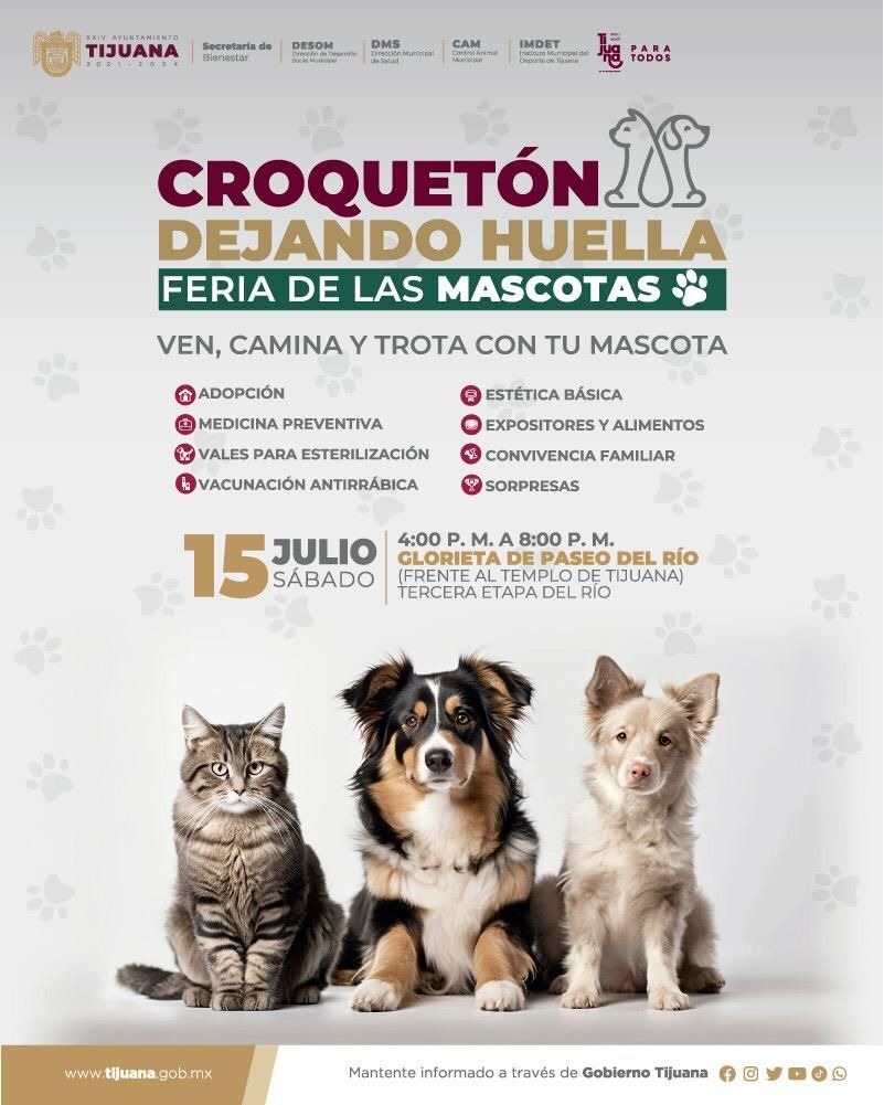 El secretario de Bienestar, Gerardo López Montes, destacó que se vivirá de nuevo una fiesta para los “michis” y “lomitos” de Tijuana al realizar la edición de la Feria de las Mascotas y ahora con un croquetón en la Tercera Etapa del Río Tijuana, a la altura de la Glorieta Paseo del Río, desde las 4 de la tarde hasta las 8 de la noche.