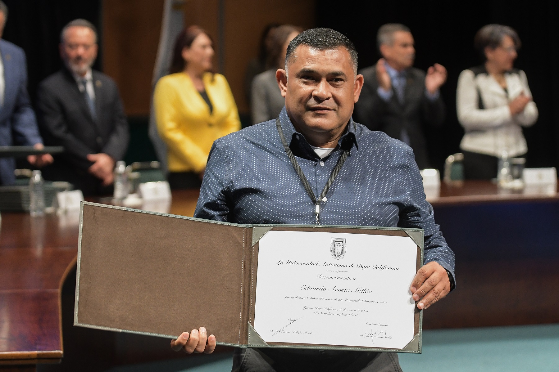 En la ceremonia, celebrada en el teatro universitario “Rubén Vizcaíno Valencia” del Campus Tijuana, se contó con la presencia de autoridades universitarias, así como familiares y amigos de quienes recibieron su reconocimiento a la antigüedad laboral.