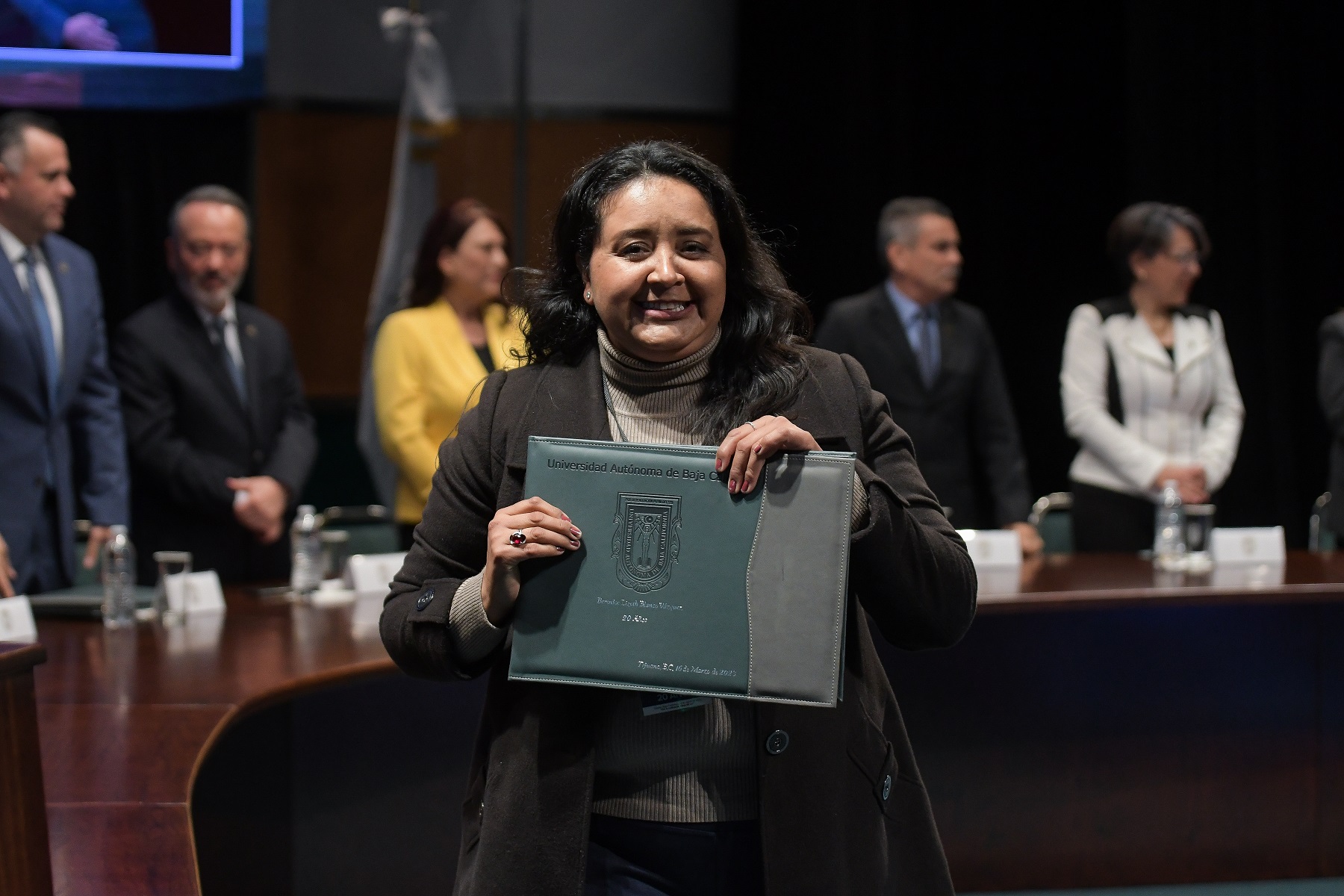 “Doy las gracias a la UABC por este reconocimiento a una labor que realizo con pasión y entusiasmo. Gracias por ser una institución sólida porque en estos 40 años jamás me faltó la catorcena, por brindarnos un trabajo seguro, estable y sin distinción alguna; por ello les puedo decir con orgullo, que cimarrón es mi corazón”.