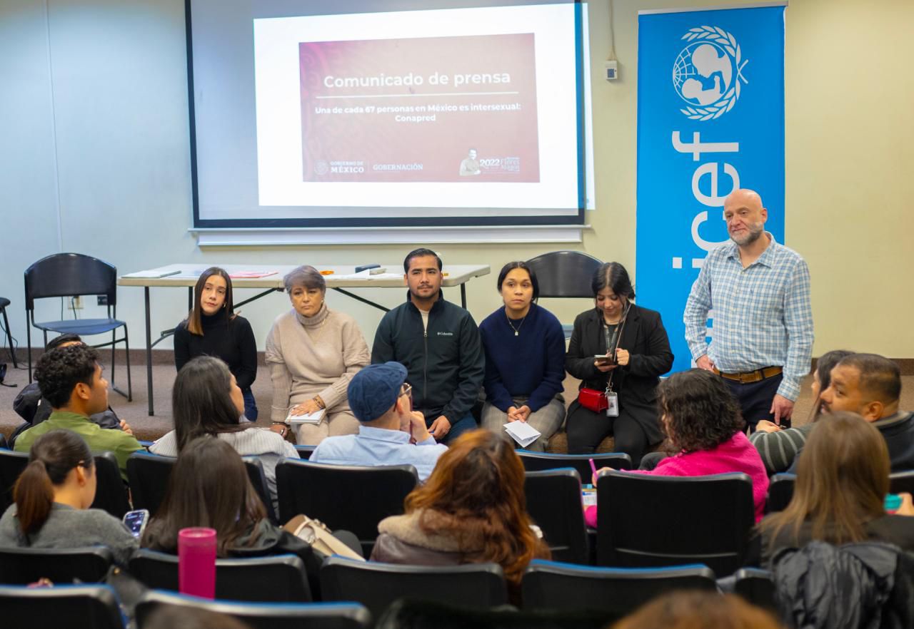 En el encuentro estuvieron presentes el encargado de despacho de la Dirección de Participación Social y Convivencia Escolar, Víctor Alberto Moreno Camacho; la coordinadora de Participación Social y Convivencia Escolar en Tijuana, Samara Monserrath Morfín Sánchez; la oficial de Educación de UNICEF, Sayra Ochoa; y el oficial de Protección de UNICEF, Antonio Garibay.