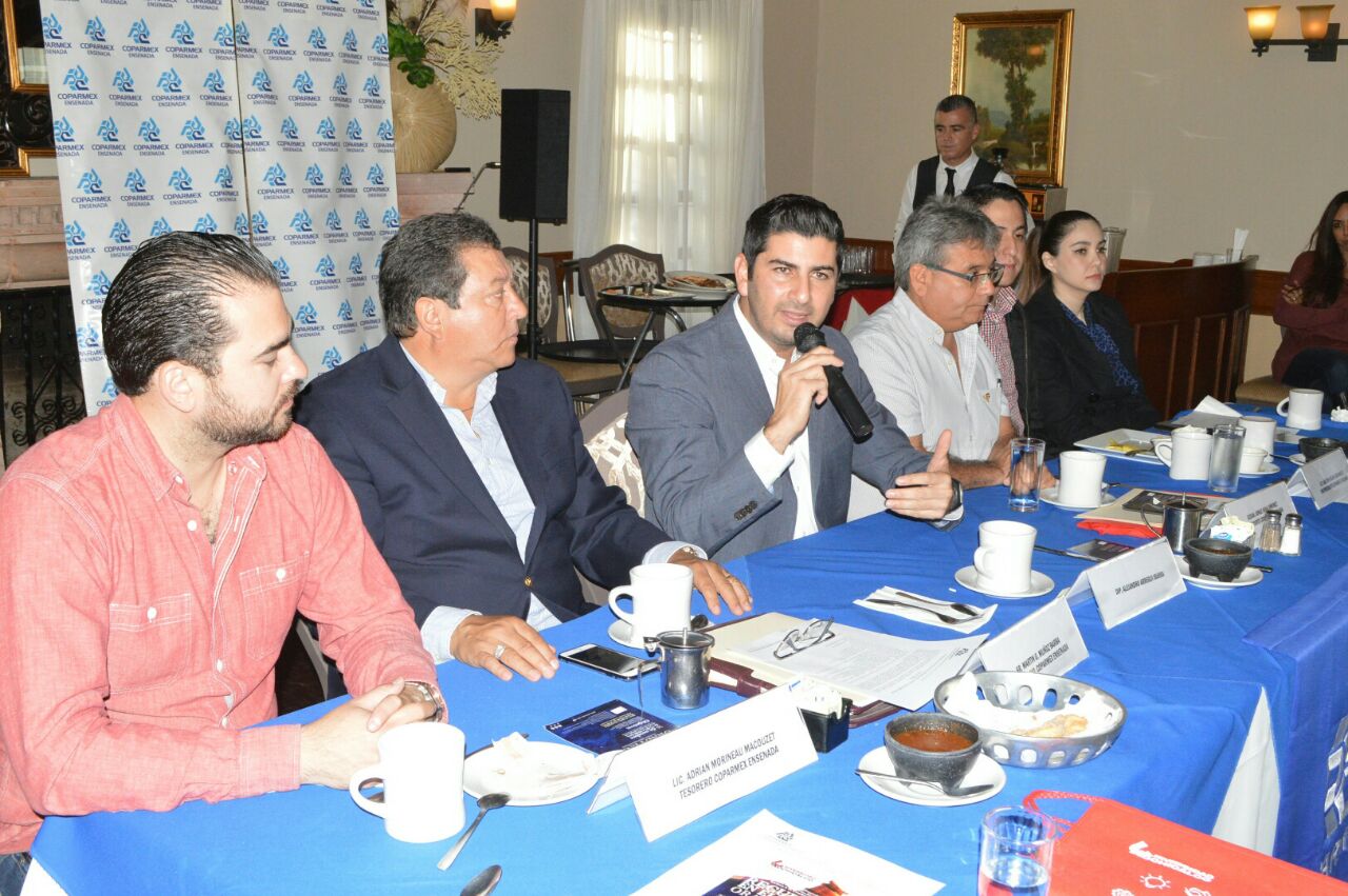 Durante su participación en la reunión semanal de Coparmex el presidente de la Junta de Coordinación política del congreso del estado habló del recorte presupuestal que se acordó con todas las fuerzas politicas para lograr el ahorro de 56 millones de pesos con la eliminación de 87 plazas y reducción de sueldos.