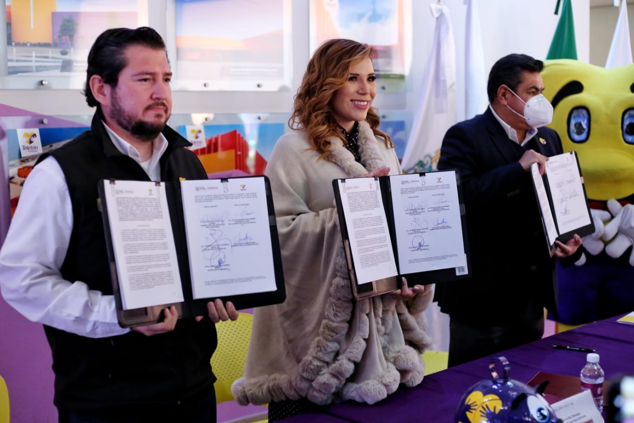 A través de un convenio firmado por Marina del Pilar, así como Julio Paz Romero, titular del CRIT, y Netzahualcóyotl Jáuregui Santillán, secretario de Bienestar, el Gobierno Estatal otorgará un recurso que permitirá atender a más menores de edad.