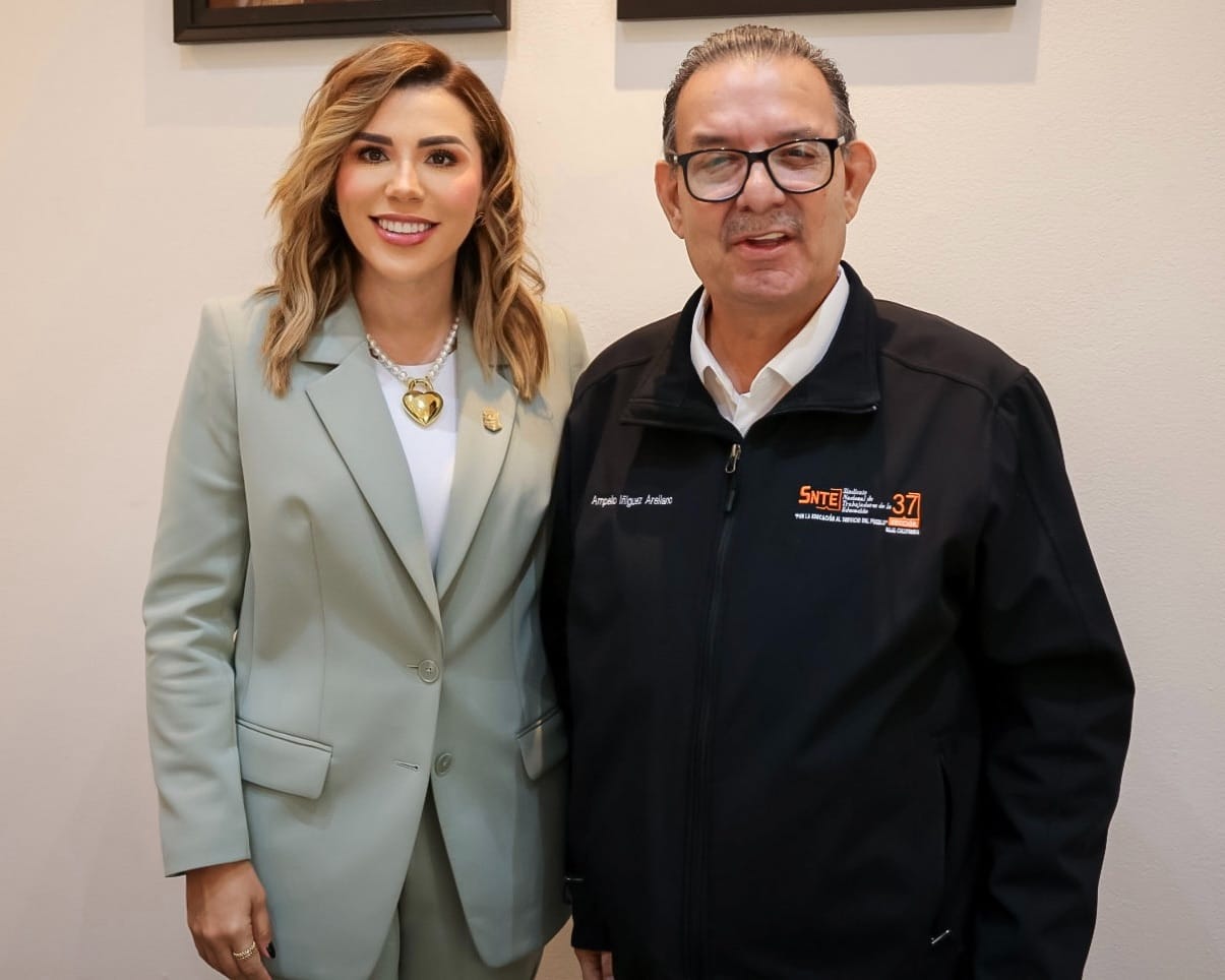 En un encuentro con el líder del Sindicato Nacional de Trabajadores de la Educación (SNTE) Sección 37, Ampelio Íñiguez, se destacó la importancia de trabajar en conjunto para garantizar que las y los docentes cuenten con condiciones dignas y seguras, basadas en el respeto a sus derechos adquiridos.