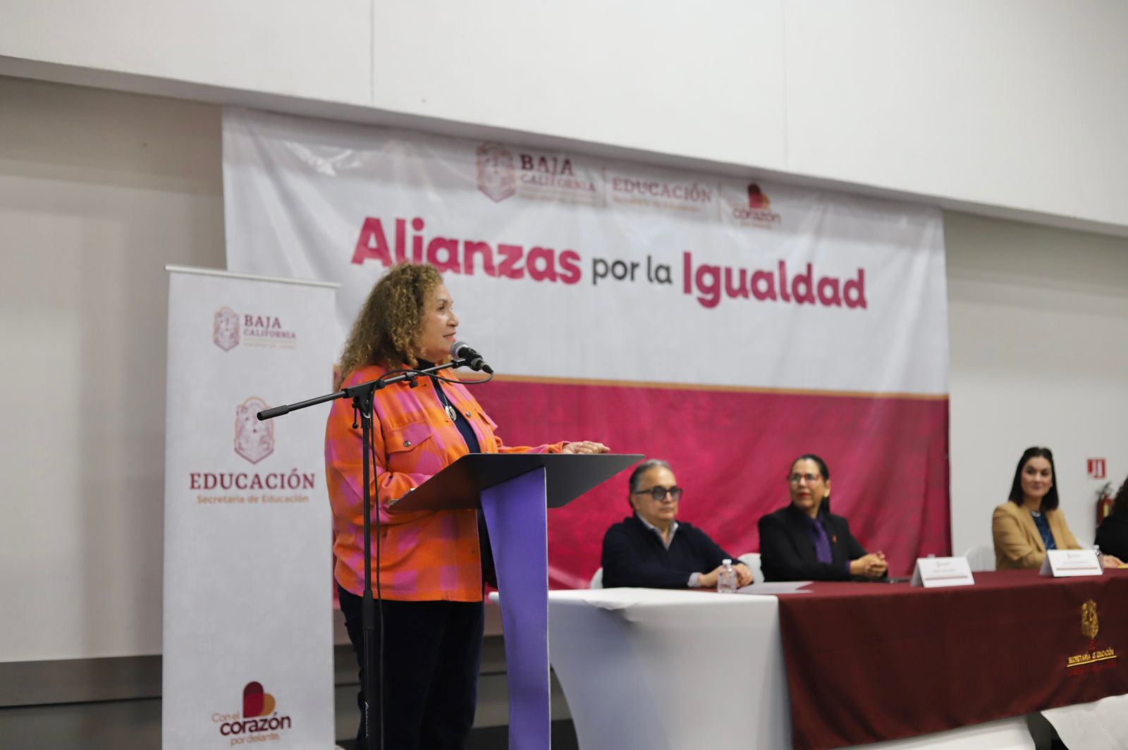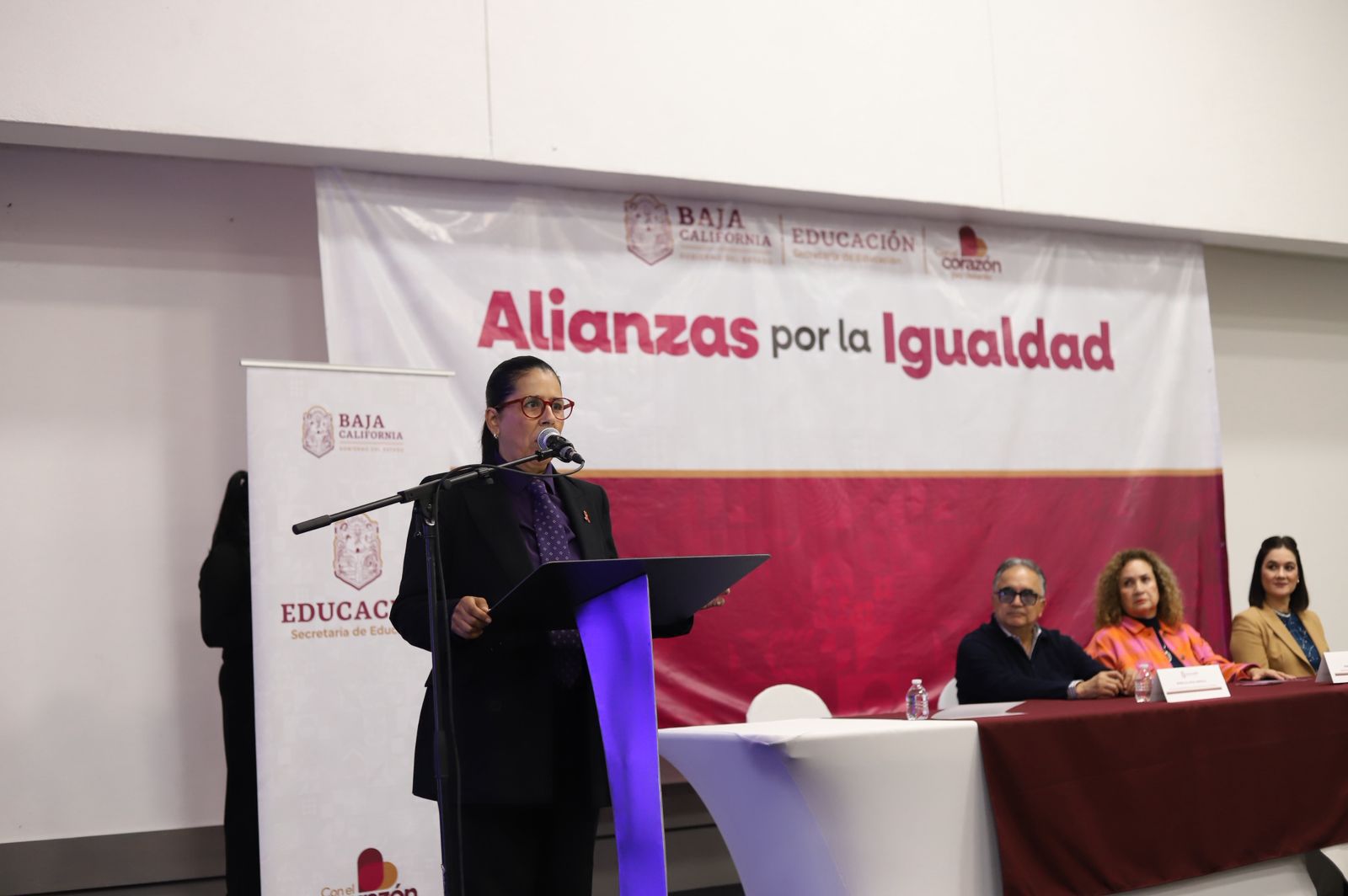 En el evento estuvieron presentes la secretaria de Educación en Baja California, Mtra. Irma Martínez Manríquez; la titular de la Secretaría de las Mujeres, Mtra. Rebecca Vega Arriola; la subsecretaria de Educación Básica, Mtra. Ana Catalina Ávila Sosa y Silva; el director estatal del subsistema Cobach, Mtro. Gerardo Arturo Solís Benavides; la responsable de la Unidad Estatal de Igualdad de Género, Lic. Miriam Meza Chaira; y, en representación de la Subsecretaría de Educación Media Superior, Superior e Investigación, la Dra. Rosario Mariñez, además de autoridades educativas, directores, coordinadores y jefes de nivel.