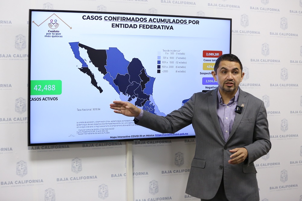 El secretario de Salud del Estado informó que la ocupación hospitalaria Covid en Baja California, es de 14.25%, con 814 camas disponibles, 223 ventiladores disponibles, 97 pacientes hospitalizados (confirmados por laboratorio), 54 intubados y la tasa de reproducción efectiva de 0.68.