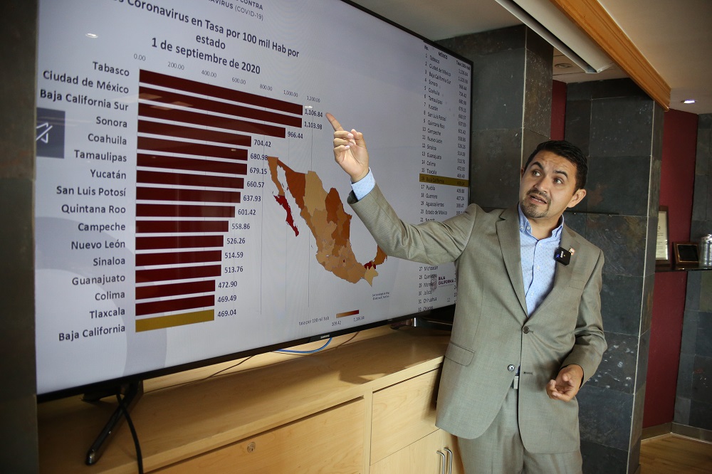 El Dr. Pérez Rico, anunció que este miércoles 2 de septiembre, el Gobierno de Baja California entregará a la Federación el estatus de los 10 indicadores que pide, para saber en qué coloración del semáforo se ubicará el Estado para la siguiente semana; enfatizando que actualmente se mantiene en “alerta máxima”, es decir, en el color “rojo”.