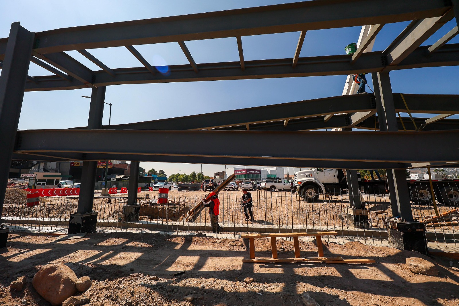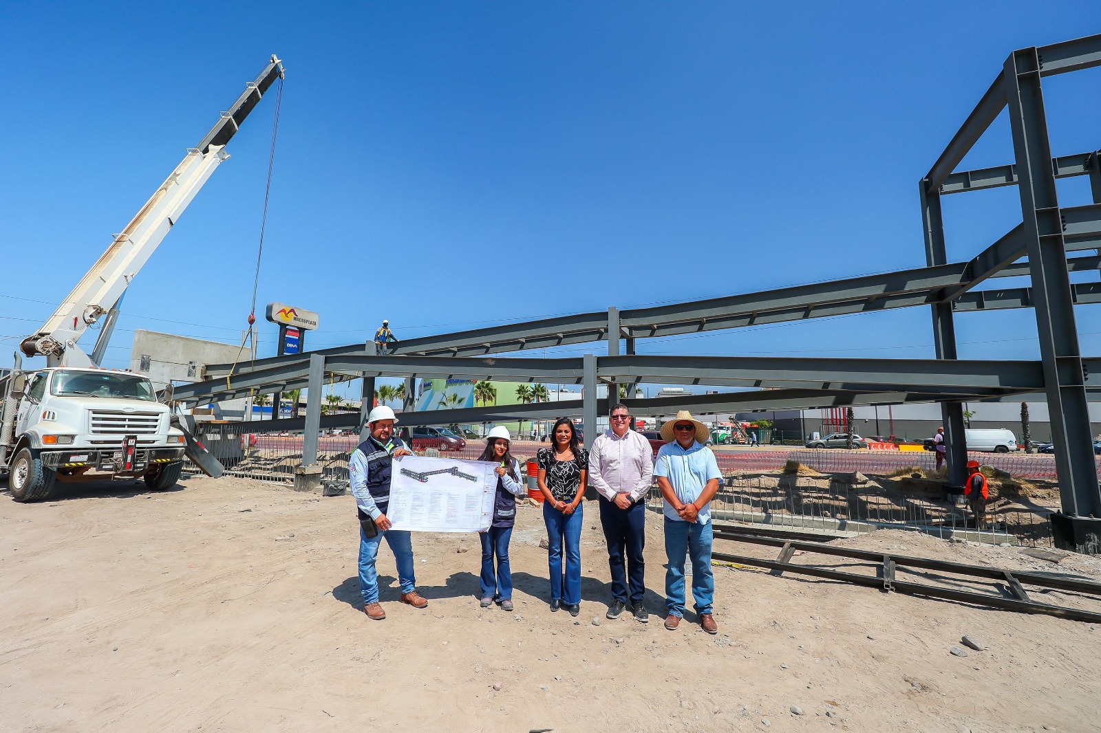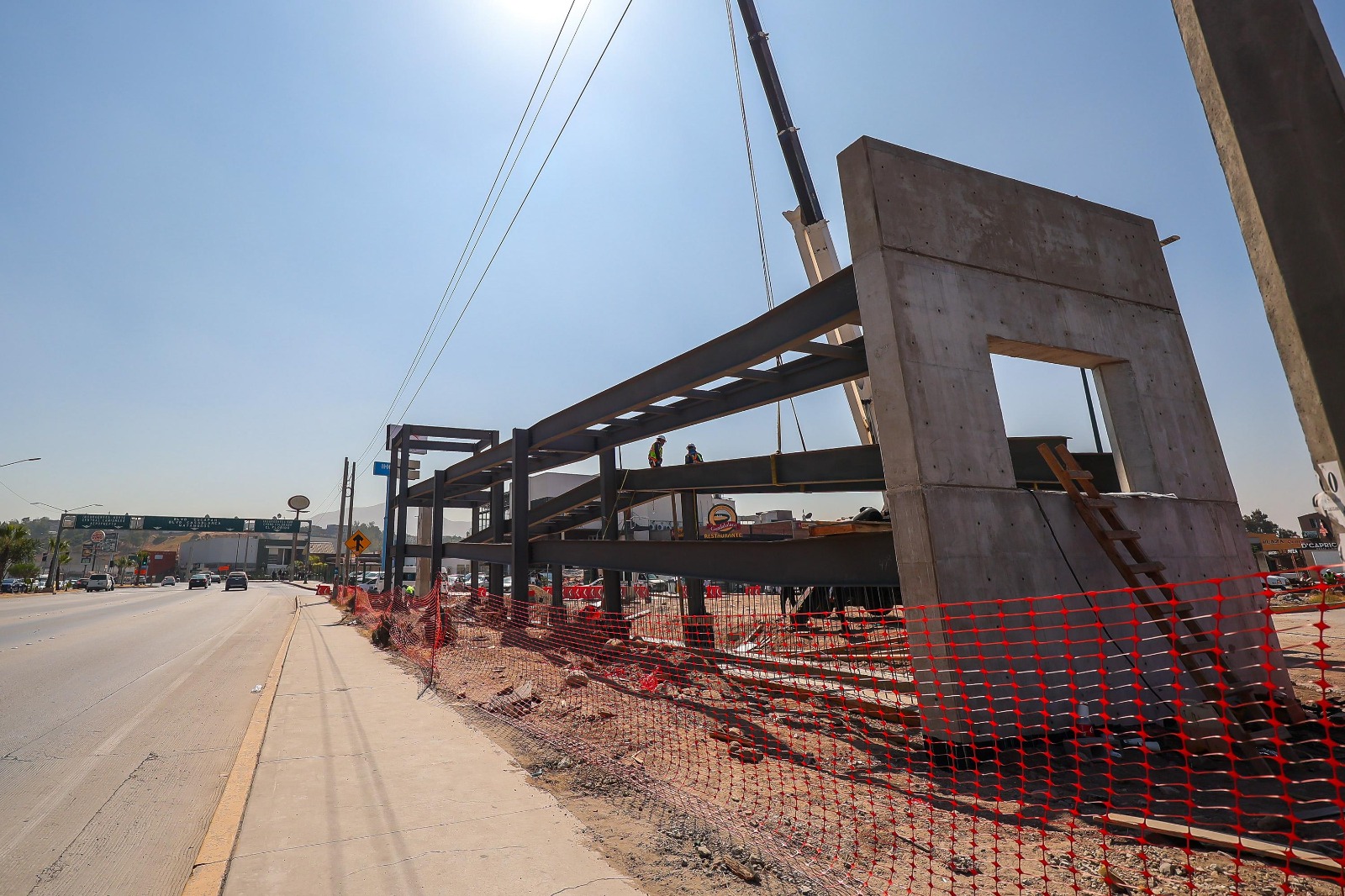 Tijuana, Baja California, a 27 de agosto de 2024.- El gobierno de la alcaldesa Montserrat Caballero Ramírez invierte más de 27 millones de pesos en la construcción del puente peatonal a la altura de la plaza comercial Macroplaza, zona donde al día circulan un promedio de 60 mil automóviles en ambos sentidos y cruzan 5 mil personas.