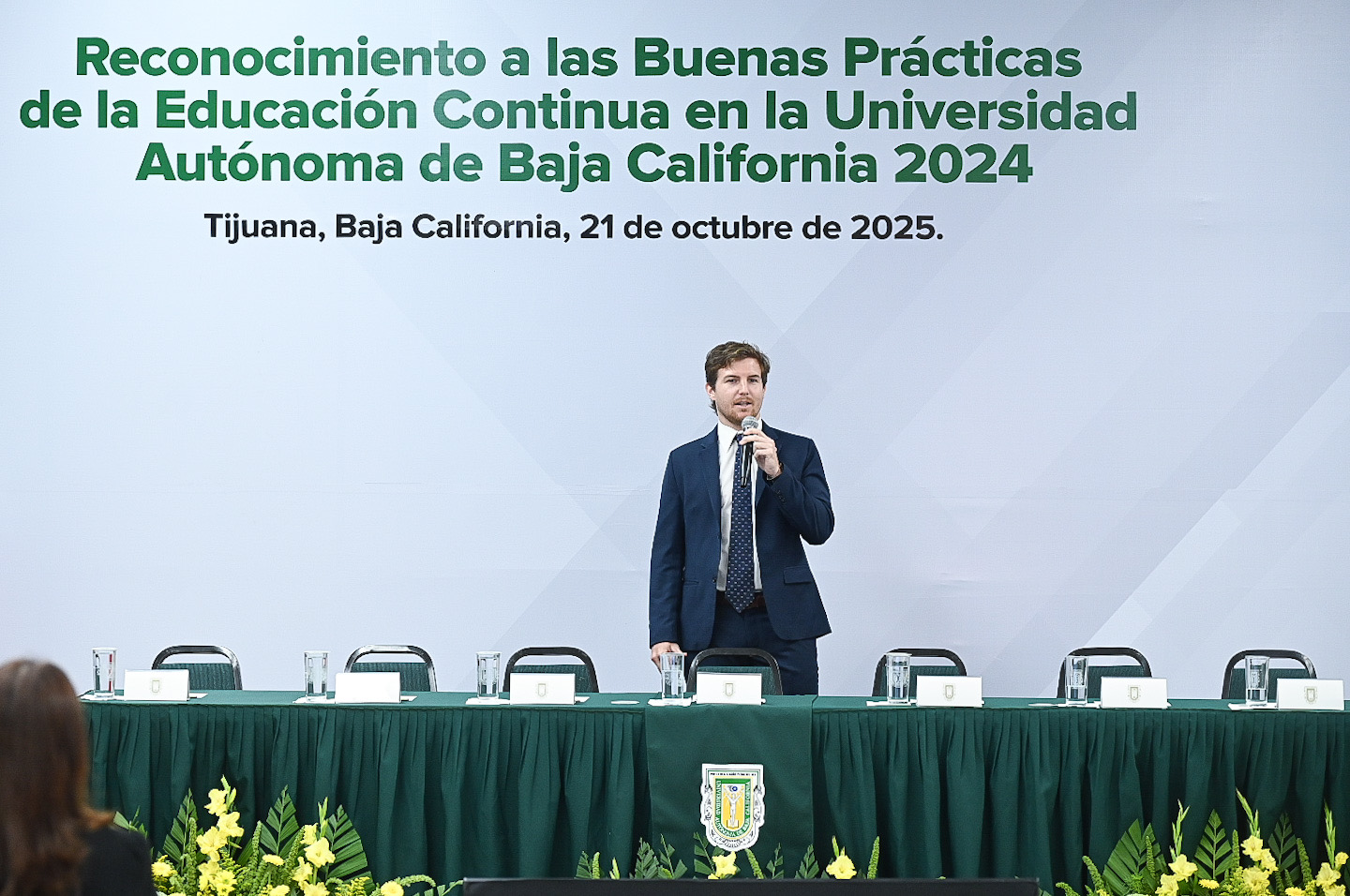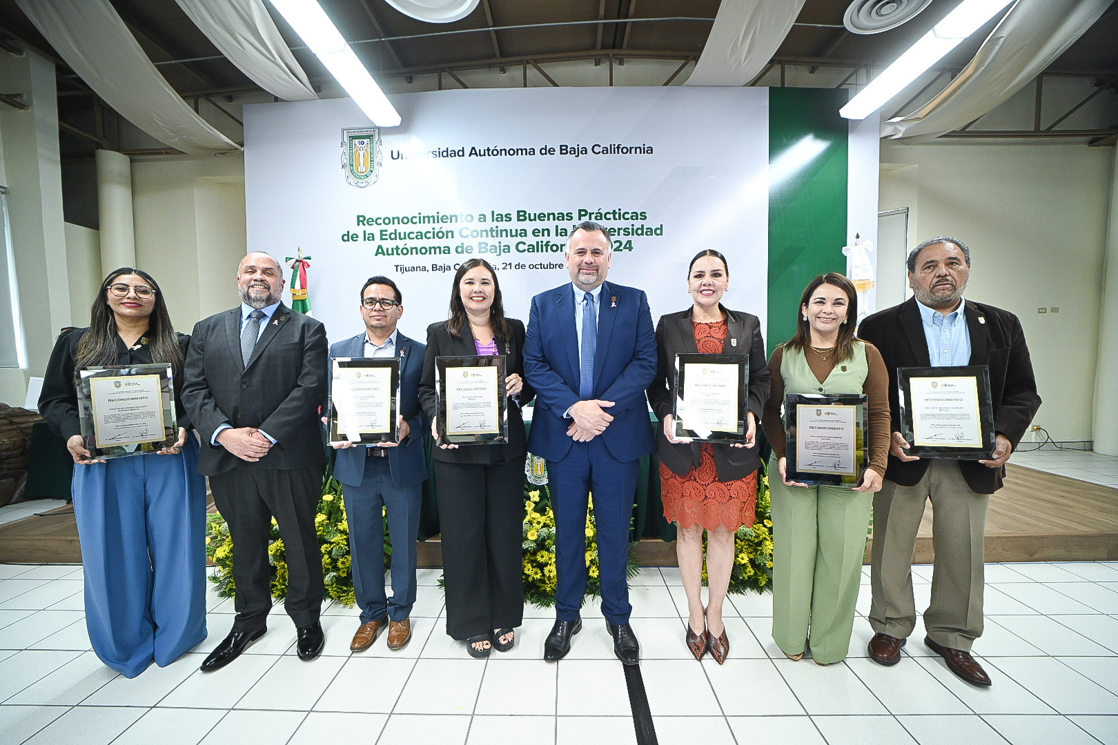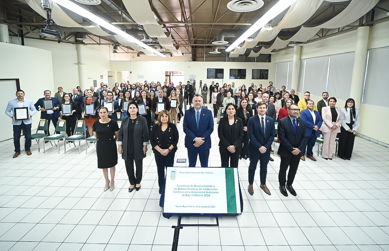 Tijuana, Baja California, martes 21 de octubre de 2025.- La Universidad Autónoma de Baja California (UABC), a través del Centro de Educación Continua (CEC), llevó a cabo la ceremonia de entrega de Reconocimiento a las Buenas Prácticas de la Educación Continua 2024, en la que se distinguió a 15 unidades académicas y 17 programas de responsabilidad social universitaria por su contribución a la formación profesional, la innovación educativa y el compromiso social.