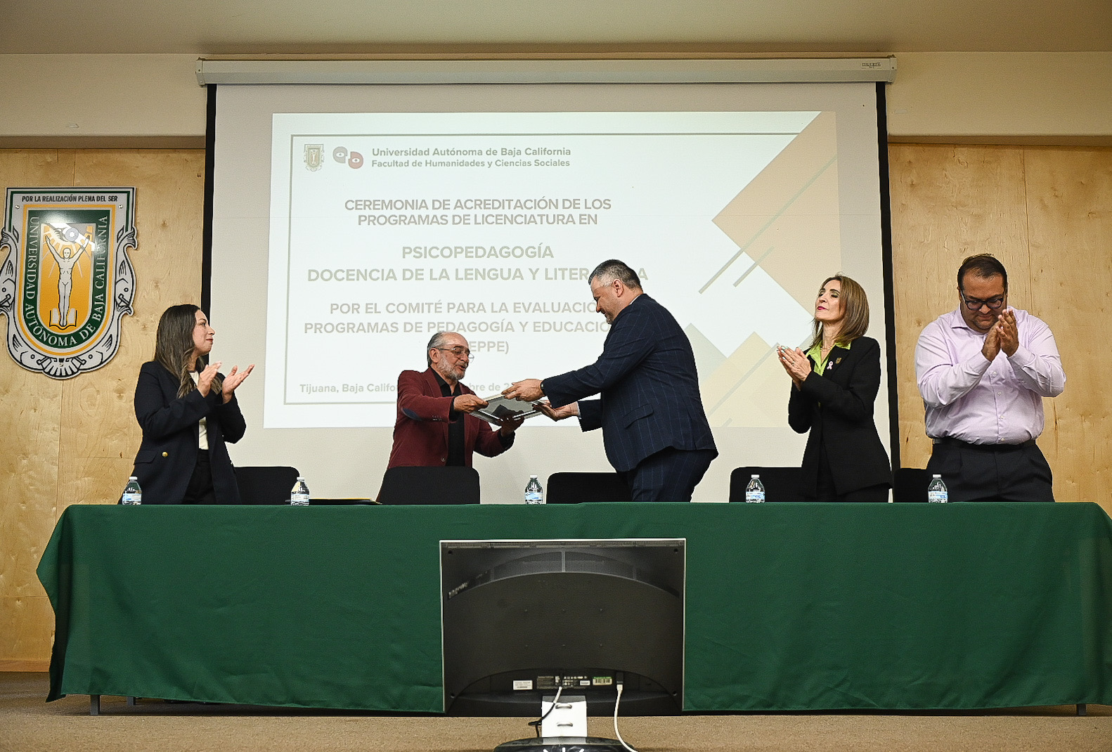 Tijuana, Baja California, martes 07 de octubre de 2025.- La Universidad Autónoma de Baja California (UABC) reafirmó su compromiso con la excelencia educativa al celebrar la reacreditación de las licenciaturas en Docencia de la Lengua y Literatura, en Psicopedagogía y en Sociología que ofrece la Facultad de Humanidades y Ciencias Sociales (FHyCS).